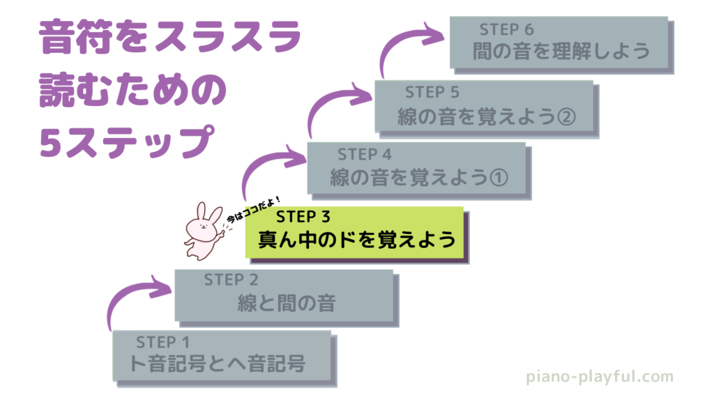 ステップ3で覚えた「真ん中のド」を思い出してください。