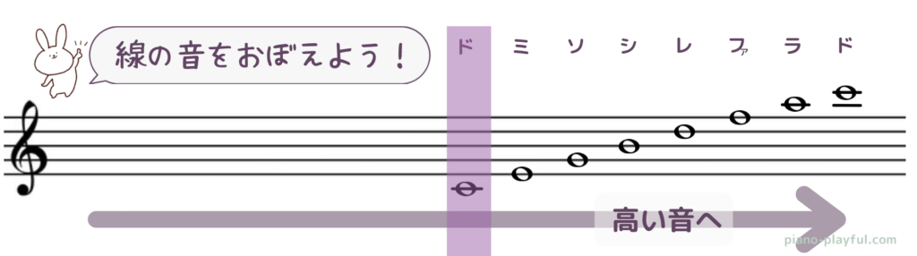 この音符を見たらすぐに「ド!」と言えるくらいバッチリ覚えておいてください。