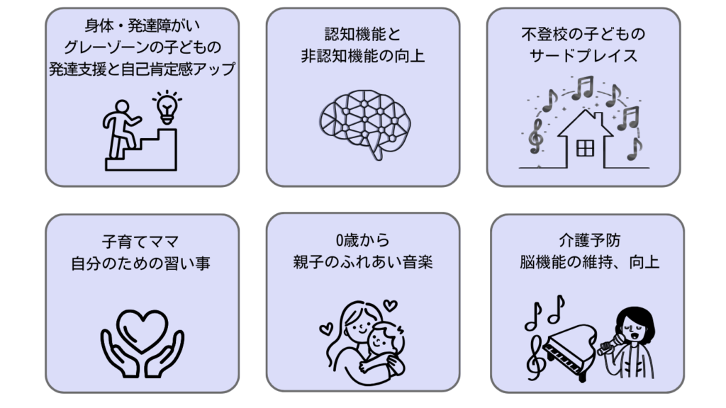 など、日常でのお困りごとに対して音楽療法が役に立つかも知れません。